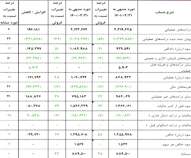 سود ناخالص 94 میلیارد تومان گزارش شده که که 13% افت داشته است.