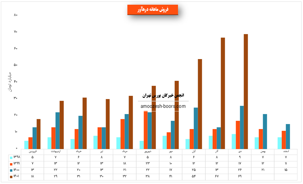 همچنین درهآور با ثبت فروش 341 میلیارد تومانی در پایان 9 ماهه ابتدایی سال توانست حدود ۱۵% بیشتر از پیشبینی فروش سالانه خود را محقق سازد