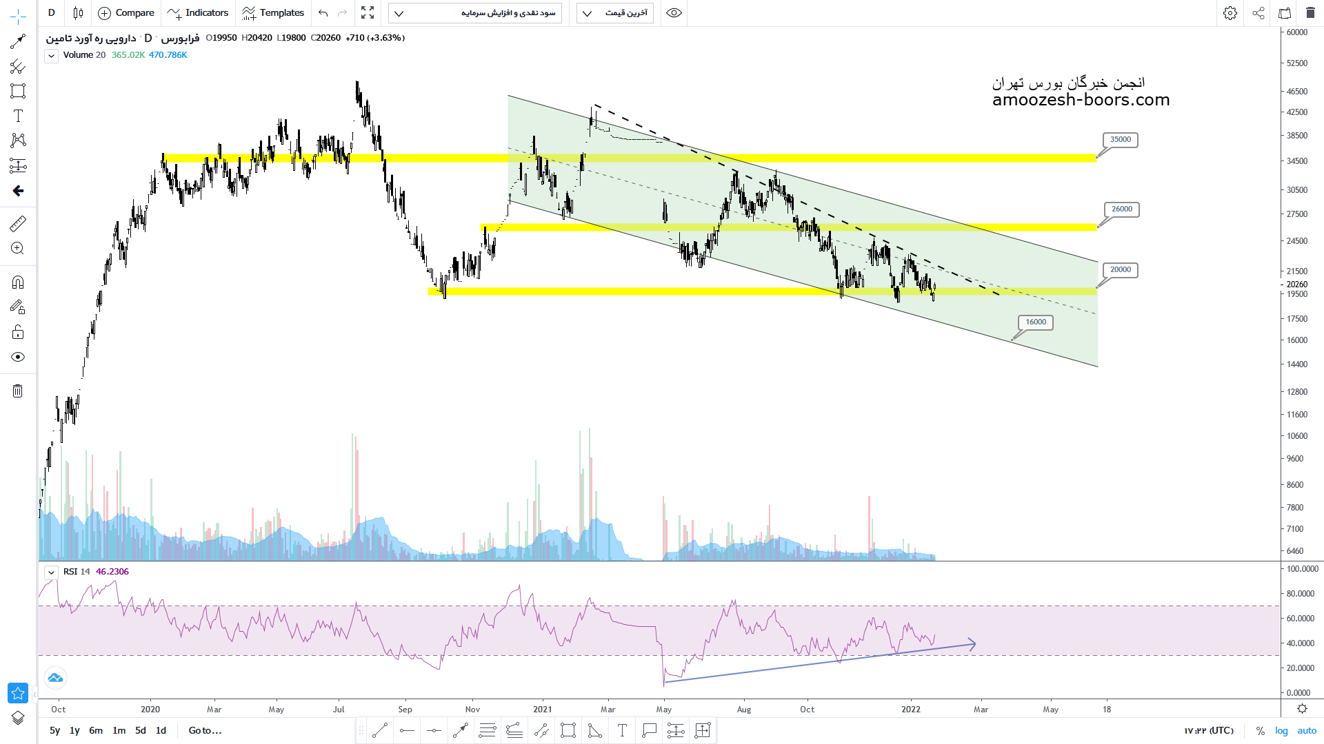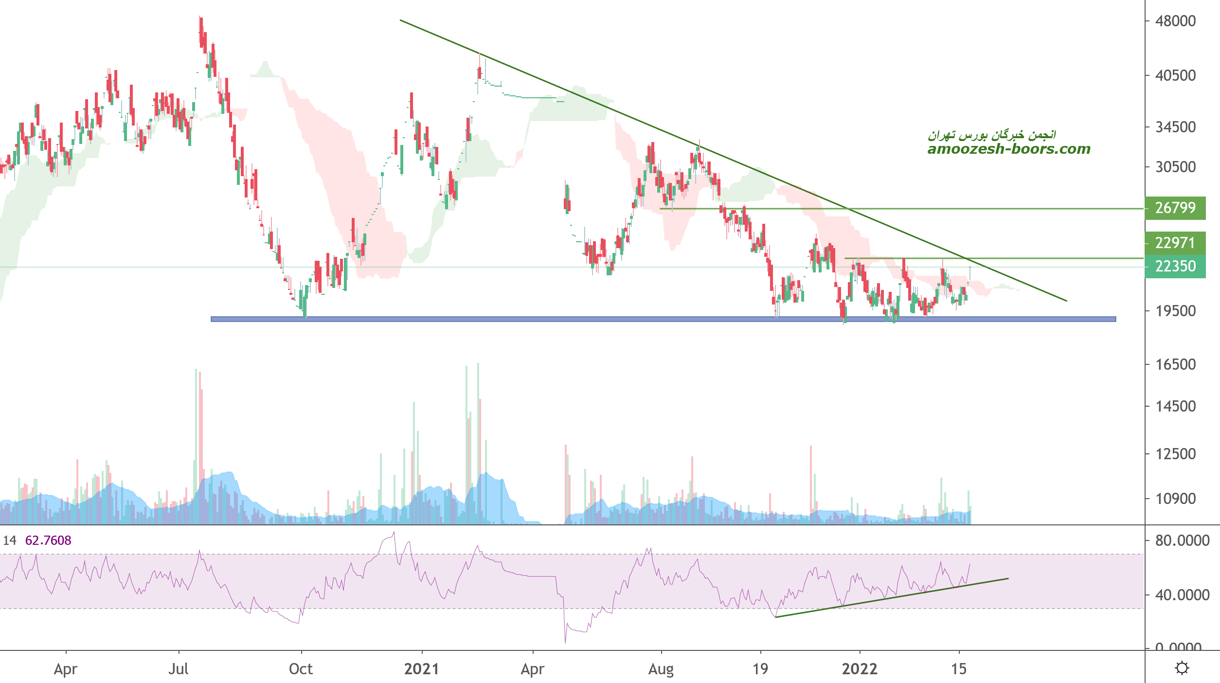 قیمت سهم درهاور در حال حاضر در حال حرکت ساید وی است،با کم شدن فشار فروش و واگرائی مثبت ایجاد شده تثبیت و حرکت قیمت محتمل میباشد،در صورت شکستن مقاومت تلاقی خط داینامیک نزولی و خط استاتیک در قیمت 23000 ریال سیگنال ورود صادر و حرکت قیمت تا 27000 ریال دور از ذهن نخواهد بود و در صورت نزول حمایت سهم درهاور 19000 ریال در نظر گرفته خواهد شد.
