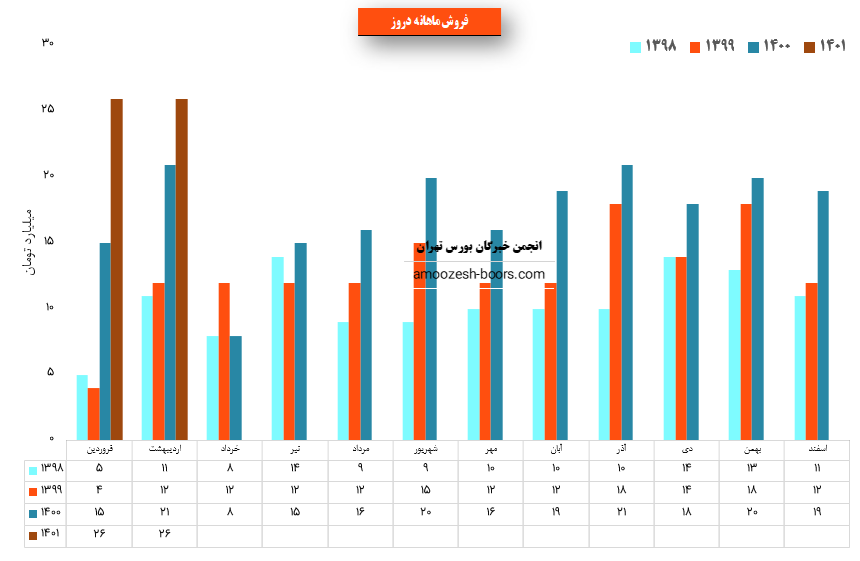شرکت دارو سازی روز دارو با نماد دروز در اردیبهشت ماه ۱۴۰1 حدود مبلغ 26 میلیارد تومان درآمد داشته که این میزان در مقایسه با ماه گذشته 0% و همچنین در مقایسه با مدت مشابه سال گذشته 24% رشد درآمد پیدا کرده است.