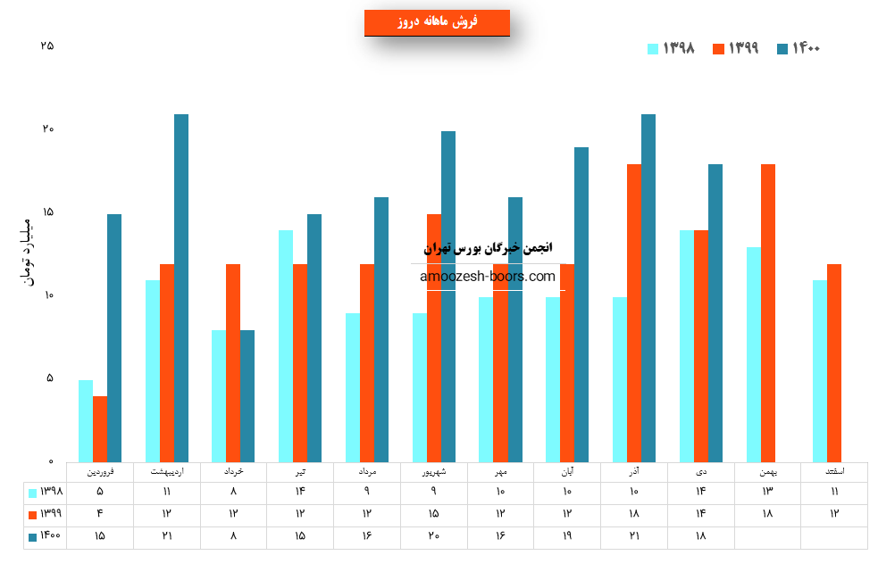 درآمد سهم دروز در دوره بهمن ماه نسبت به ماه قبل 13% افزایش و نسبت به میانگین ماه های قبل 17% افزایش داشته است. شرکت نسبت به دوره 1 مشابه سال قبل 10% افزایش درآمد داشته است.شرکت روز دارو طی افشاییه ای از فروش یک دستگاه خودروی سواری تویوتا کمری GLX 2500 CC مدل 2014 و شناسایی بیش از ۱۲ میلیارد ریال سود خالص خبر داد .