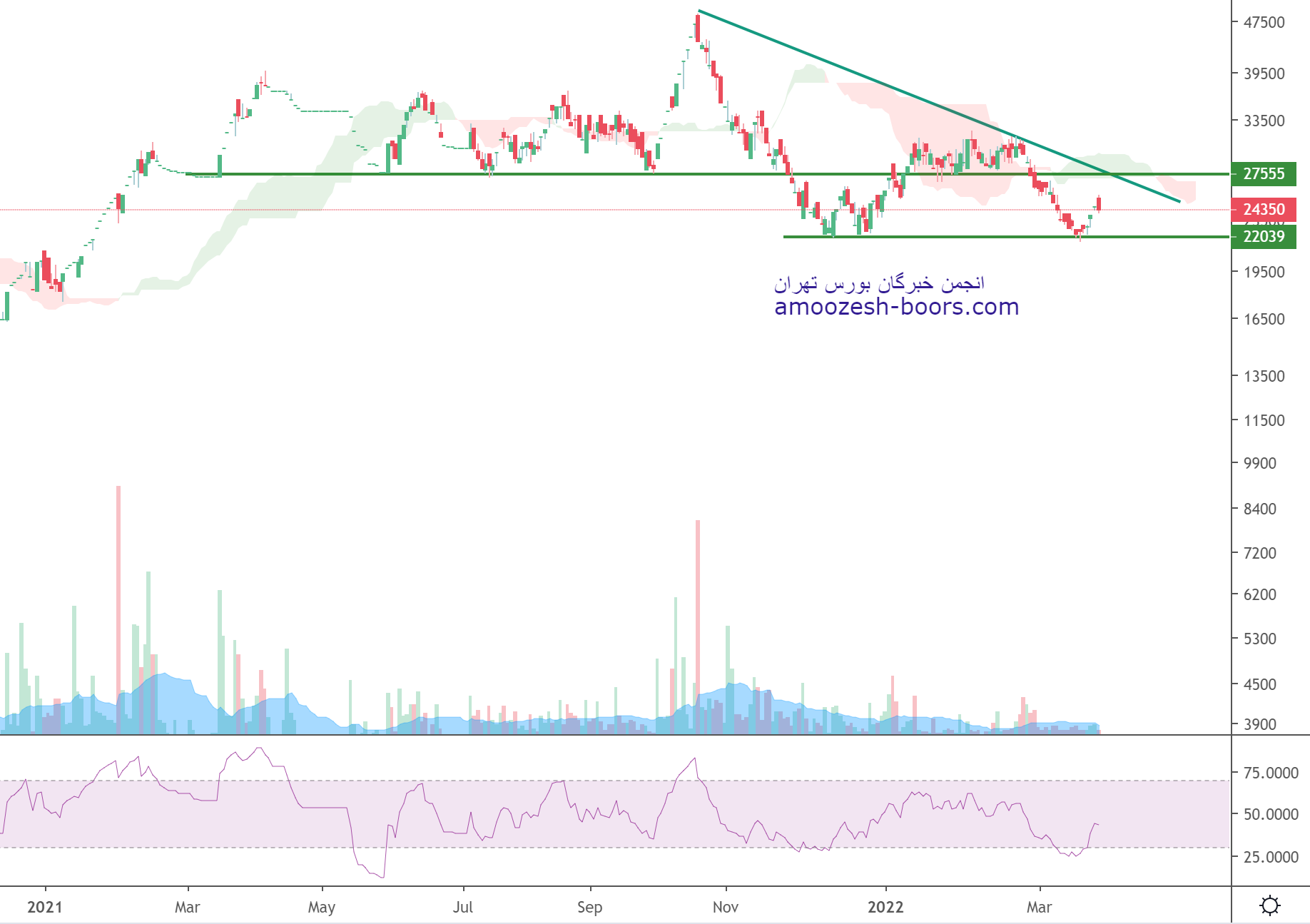 در صورت تایید پولبک، قیمت می تواند تا محدوده 3800 تومان رشد خود را ادامه دهد اما درصورت عدم تایید پولبک و بازگشت مجدد قیمت به زیر محدوده حمایتی 2700 تومان انتظار ریزش بیشتر از قیمت تا محدوده 2200 و یا حتی در صورت شکست تا محدوده حمایتی 1600 تومان از سهم می رود