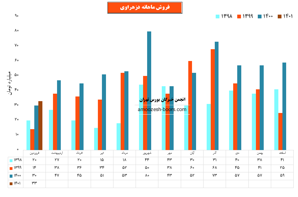 سهم دزهراوی در فروردین ماه حدود بیش از 29 میلیون عدد از محصولات خود را به فروش رسانده که این میزان در مقایسه با حجم فروش ماه گذشته خود حدود 56% کاهش پیدا کرده است.