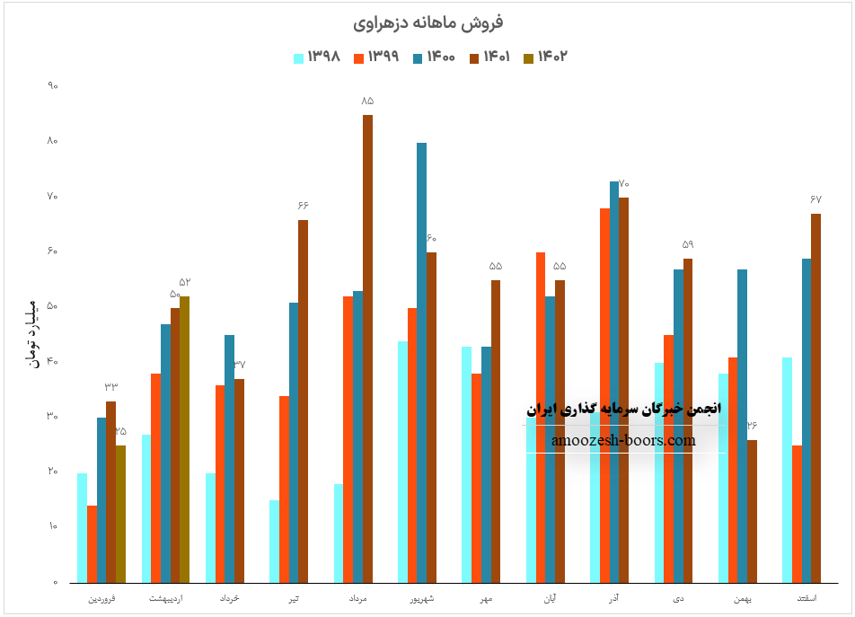 سهم دزهراوی با ثبت فروش 665 میلیارد تومان در پایان سال مالی منتهی به اسفند 1401 توانست تنها حدود 76 درصد از پیشبینی فروش سالانه خود را محقق سازد.