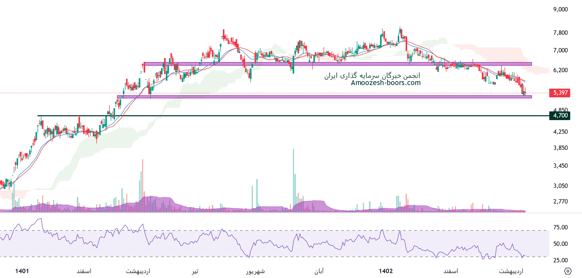 در این تحلیل به بررسی سهم دسبحان با استفاده نقاط مهم حمایتی و مقاومتی میپردازیم.