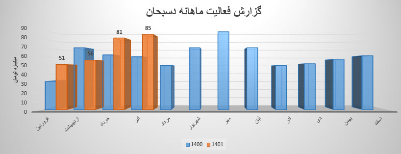 سهم دسبحان در دوره یک ماهه منتهی به 31 مرداد ماه 1401، مبلغ 105.2 میلیارد تومان درآمد داشته است که نسبت به ماه قبل 24% افزایش و نسبت به میانگین ماه های قبل 55% افزایش و نسبت به دوره 1 ماهه مشابه سال قبل 110% افزایش درآمد داشته است.