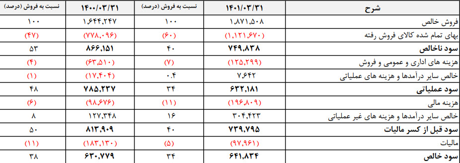 فروش سهم دسبحان: 723 میلیارد تومان که نسبت به دوره مشابه گذشته 22% افزایش یافته است.