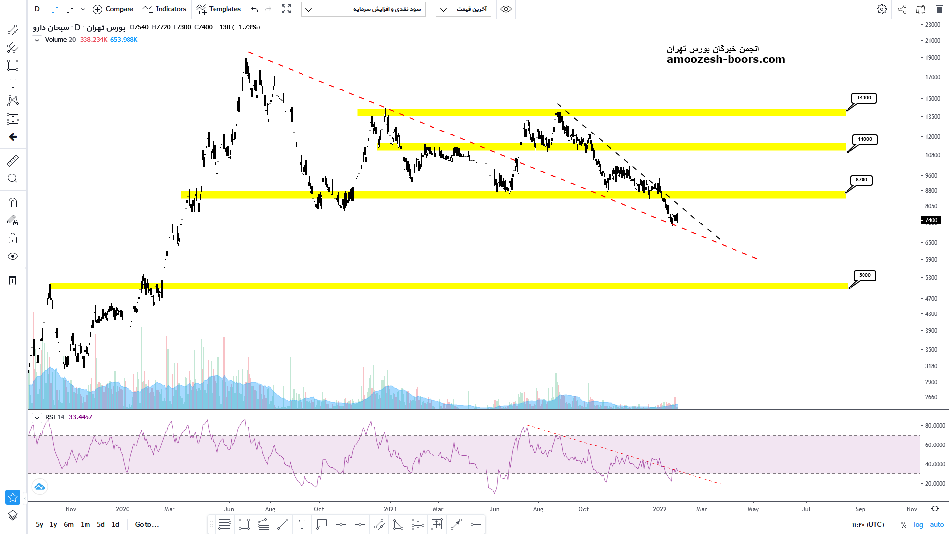 دسترسی کامل و به روز به این بخش از تحلیل های 300 سهم معروف بازار، مختص اعضای VIP میباشد اما چکیده این مطالب را می توانید به صورت رایگان در کانال تلگرام ما داشته باشید.