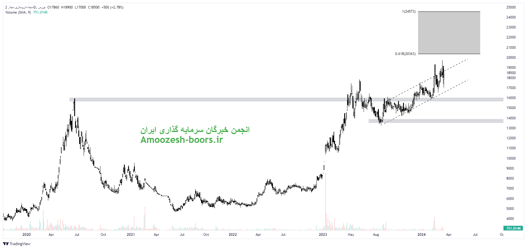 نماد دسینا در محدوده کم ریسک کف کانال صعودی کوتاه مدت قرار دارد، در صورت تثبیت قیمت، تارگت های سهم دسینا 20000 و 24000 ریال در نظر گرفته خواهند شد، همچنین در صورت از دست رفتن کف کانال اولین حمایت سهم 13500 ریال در نظر گرفته خواهد شد.