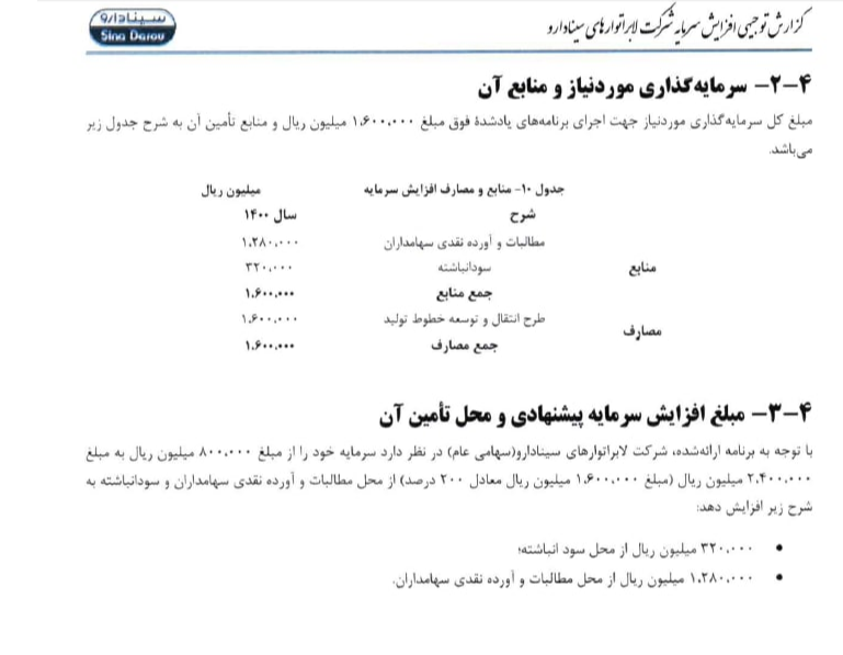 شرکت درنظر دارد در جهت تامین مالی و نقدینگی کافی در جهت سرمایه در گردش درخواست افزایش سرمایه از محل آورده نقدی و مطالبات حال شده سهامداران اقدام نماید.