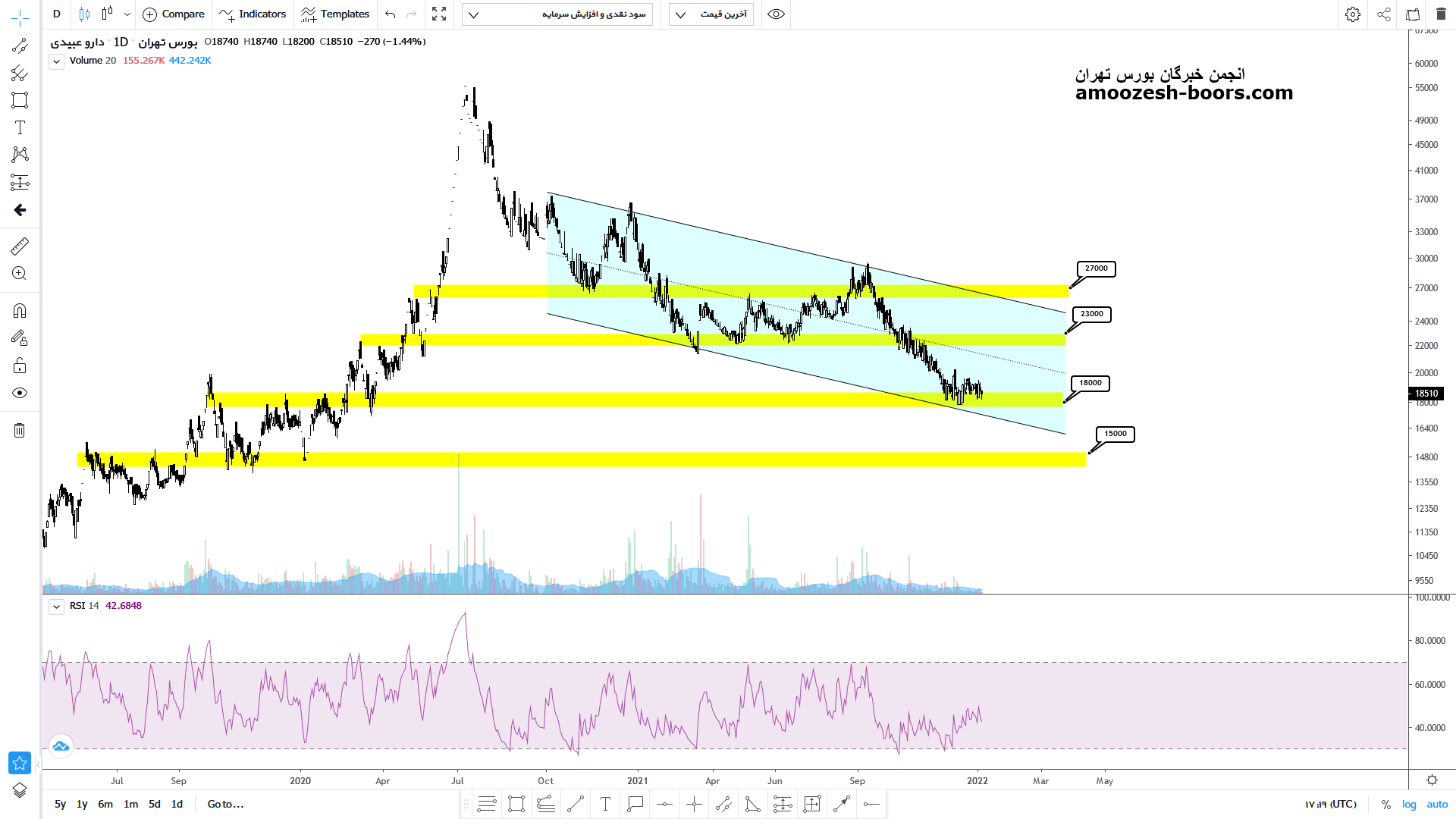 اما درصورتیکه قیمت حمایت نشود و محدوده پر تراکم حمایتی 1600 الی 1800 شکسته شود نزول تا حمایت محدوده 1500 نیز ادامه خواهد داشت