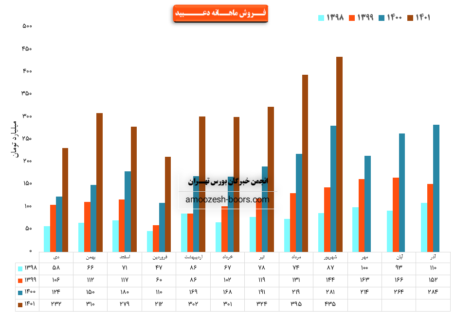 فروش سهم دعبید: 2790 میلیارد تومان که نسبت به دوره مشابه گذشته 75% افزایش یافته است.