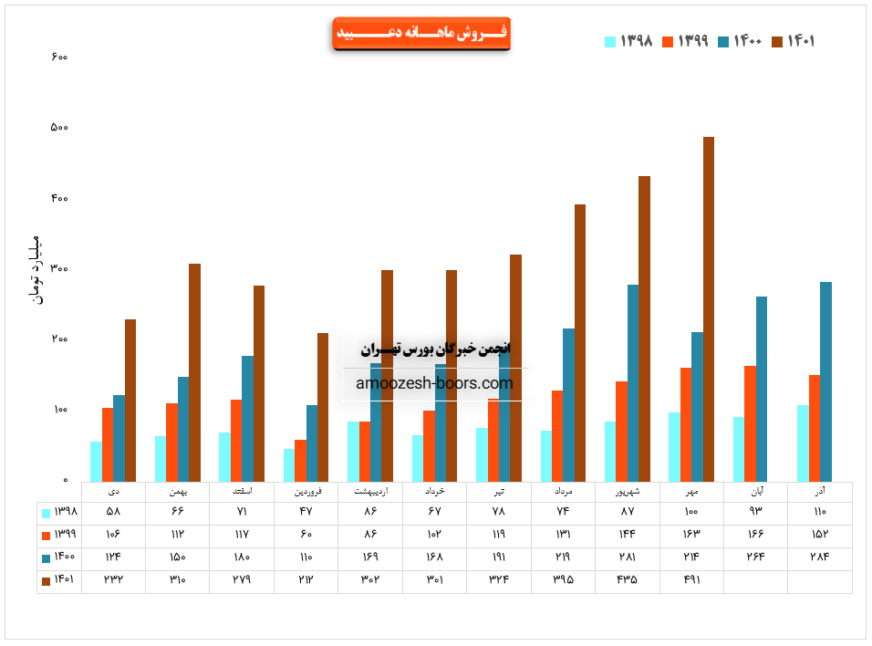 فروش سهم دعبید: 1636 میلیارد تومان که نسبت به دوره مشابه گذشته 81% افزایش یافته است.