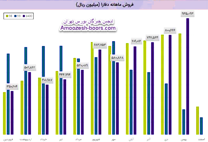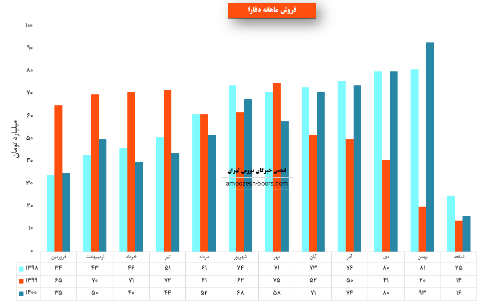 سهم دفارا در اسفند ماه حدود بیش از 19 هزار عدد از محصولات خود را به فروش رسانده که این میزان در مقایسه با حجم فروش ماه گذشته خود حدود 86% کاهش پیدا کرده است.