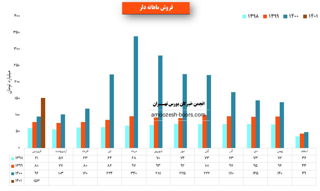 سهم دلردر فروردین ماه حدود بیش از 95 میلیون عدد از محصولات خود را به فروش رسانده که این میزان در مقایسه با حجم فروش ماه گذشته حدود 280% افزایش پیدا کرده است.