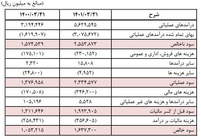 سود ناخالـص: 1123 میلیارد تومان که نسبت به دوره مشابه گذشته 109% افزایش یافته است.