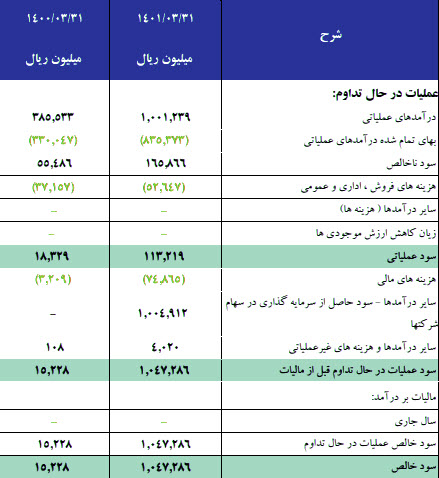 سود عملیاتی: 56 میلیارد تومان که نسبت به دوره مشابه گذشتـه 632% افزایش یافته است.