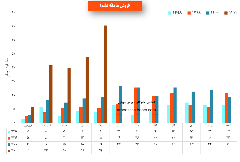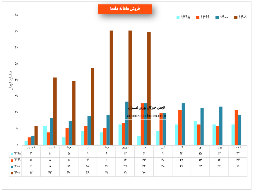 فروش سهم دلقما: 259 میلیارد تومان که نسبت به دوره مشابه گذشته 152% افزایش یافته است.