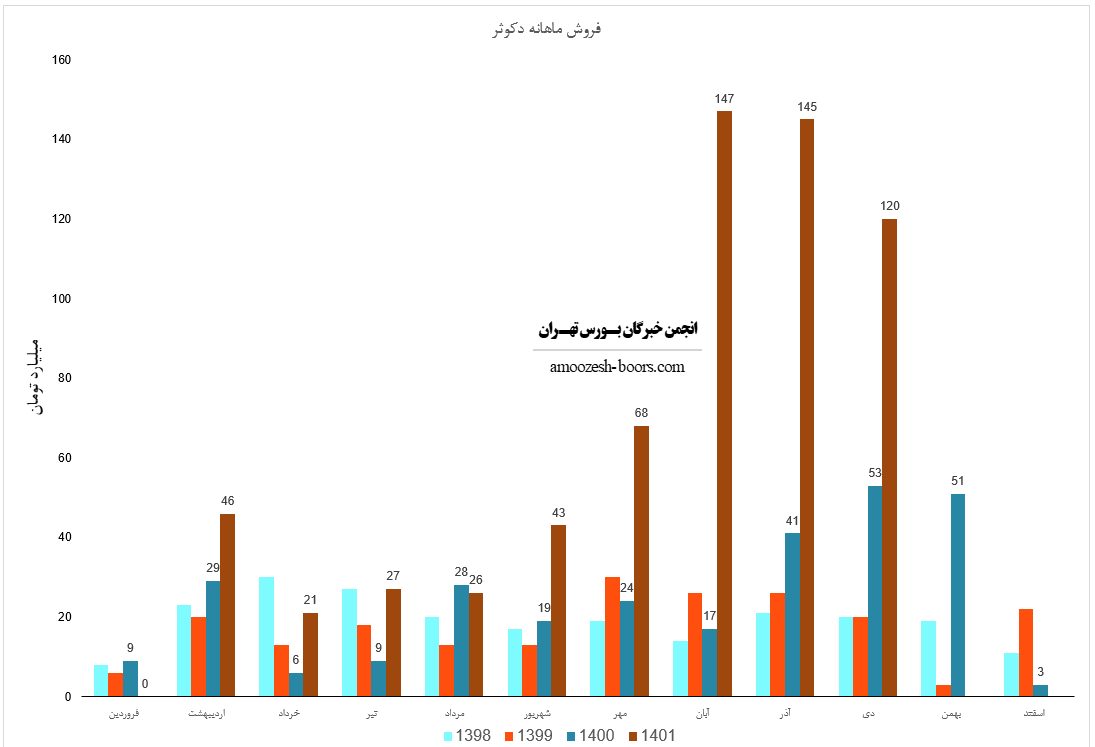 نماد دکوثر برای 3 ماهه باقیمانده سال مالی خود فروش حدود 112/000 عدد معادل 174 میلیارد تومان از محصولات خود را پیشبینی کرده است.