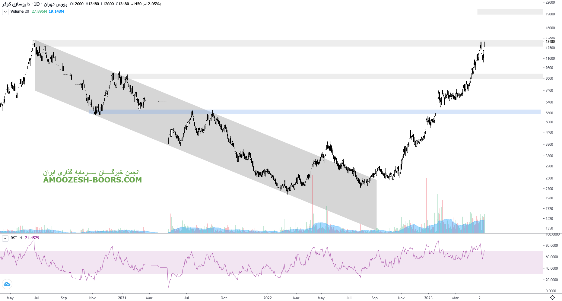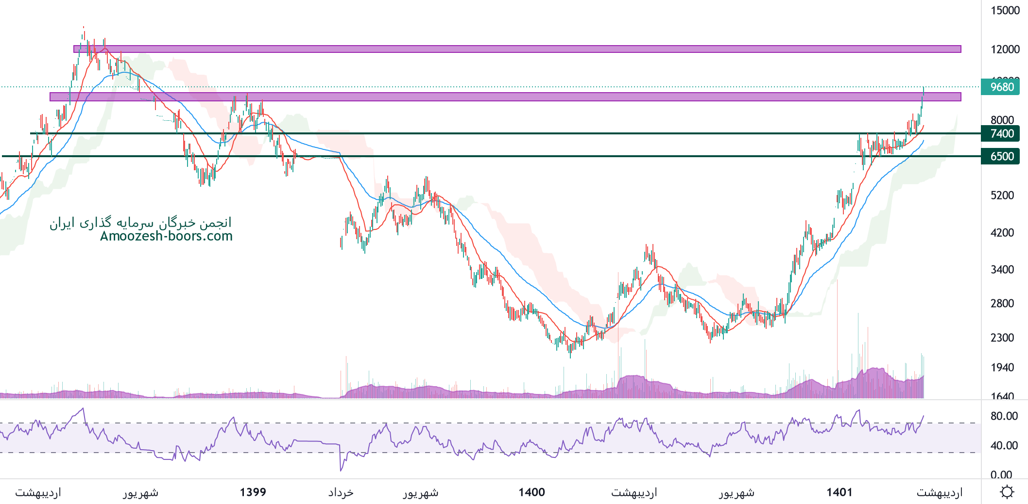 نماد دکوثر موفق به عبور از سطح مقاومتی 9400 ریال شده، در صورت تثبیت قیمت در این محدوده نقطه ورود کم ریسکی خواهد بود . حرکت سهم تا 12500 ریال محتمل خواهد بود، همچنین در صورت از دست رفتن محدوده 9400 ریال، حمایت بعدی سهم 7400 ریال ارزیابی میگردد.