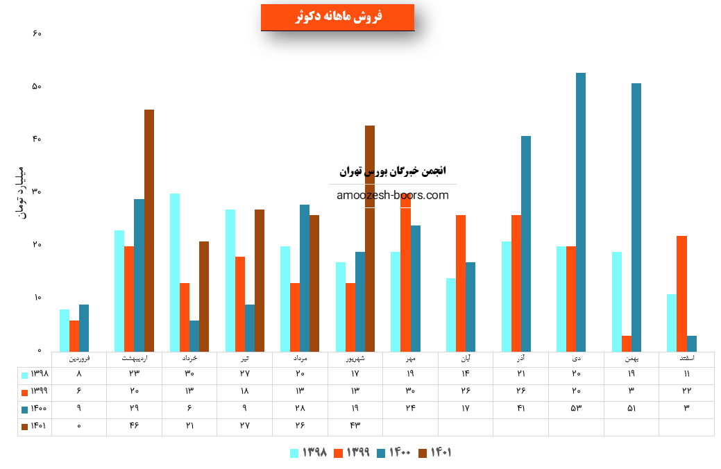 همچنین سهم دکوثر با ثبت فروش 163 میلیارد تومانی در پایان 6 ماهه ابتدایی سال توانست تنها حدود 30% از فروش سالانه خود را محقق سازد.