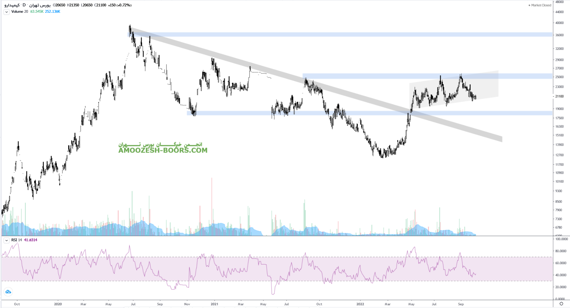 قیمت سهمدکیمی پس از برخورد به ناحیه کف حمایتی کانال صعودی کوتاه مدت خود مستعد رشد تا ناحیه مقاومتی ۲۵۰۰ تومان میباشد تا در صورت شکست این ناحیه مقاومتی مهم رشد خود را تا ناحیه سقف تاریخی ۳۶۰۰ تومان نیز ادامه دهد اما در صورت از دست رفتن کانال صعودی و شکسته ناحیه کف حمایتی قیمت میتواند اصلاح خود را تا ناحیه ۱۸۰۰ تومان نیز ادامه دهد.