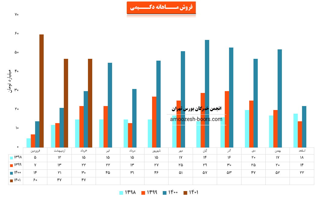 سهم دکیمی در اردیبهشت ماه حدود بیش از 5 میلیون عدد از محصولات خود را به فروش رساند که این میزان در مقایسه با حجم فروش ماه گذشته حدود 43% افزایش پیدا کرده است.