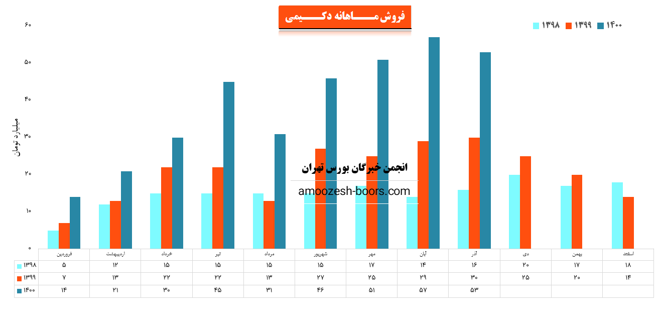 گرچه رشد حدود 20 درصدی نرخ فروش پرفروش ترین محصول سهم دکیمی یعنی قرص و دراژه، باعث افزایش مبلغ فروش ماه آذر دکیمی شده است اما دلیل افت درامد دکیمی در آذر نسبت به آبان افت شدید میزان فروش دو محصول کپسول و آمپول میباشد.