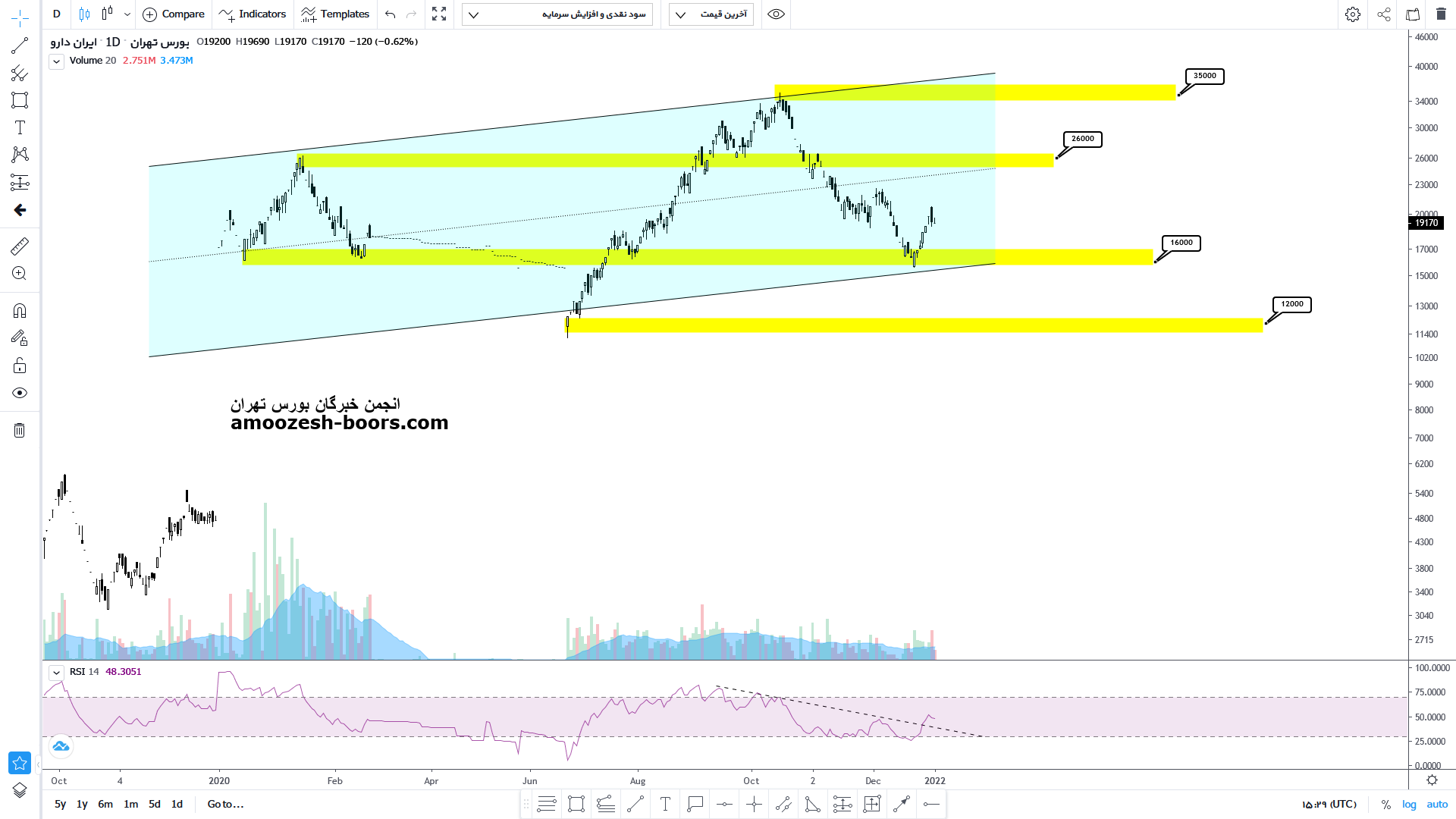 قیمت سهم دیران پس از اصلاح و برخورد به محدوده حمایتی کف کانال واکنش مثبتی راازخود نشان داده و اکنون مقاومت محدوده 2600 تومان که هم مقاومت کلاسیکی و هم مقاومت میدلاین کانال میباشد را سر راه خود میبیند که درصورت شکست این مقاومت میتواند سیگنال ورود صادر و تا محدوده 3500 نیز صعودی را تجربه کند اما در صورتیکه نتواند مقاومت را پشت سر بگزارد مجددا حمایت محدوده 1600 را تست خواهد کرد