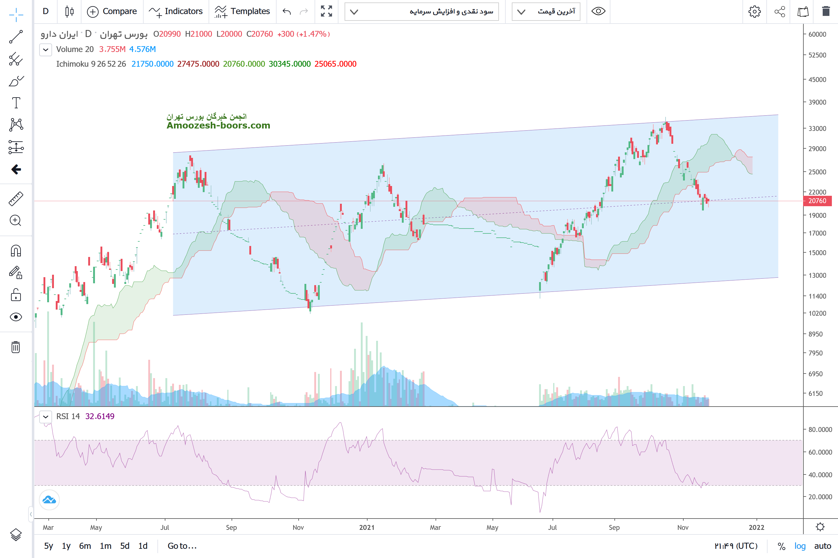 سهم دیران نشانه پر قدرتی از تثبیت و برگشت روند روی چارت مشاهده نشده و با توجه به مومنتوم قوی در اصلاح قیمتی شکست حمایت ابر کومو محتمل بوده و قمت میتواند قیمت های پایین تری را تست نماید .اولین سطح حمایتی ضعیف سهم دیران 20000 میباشد