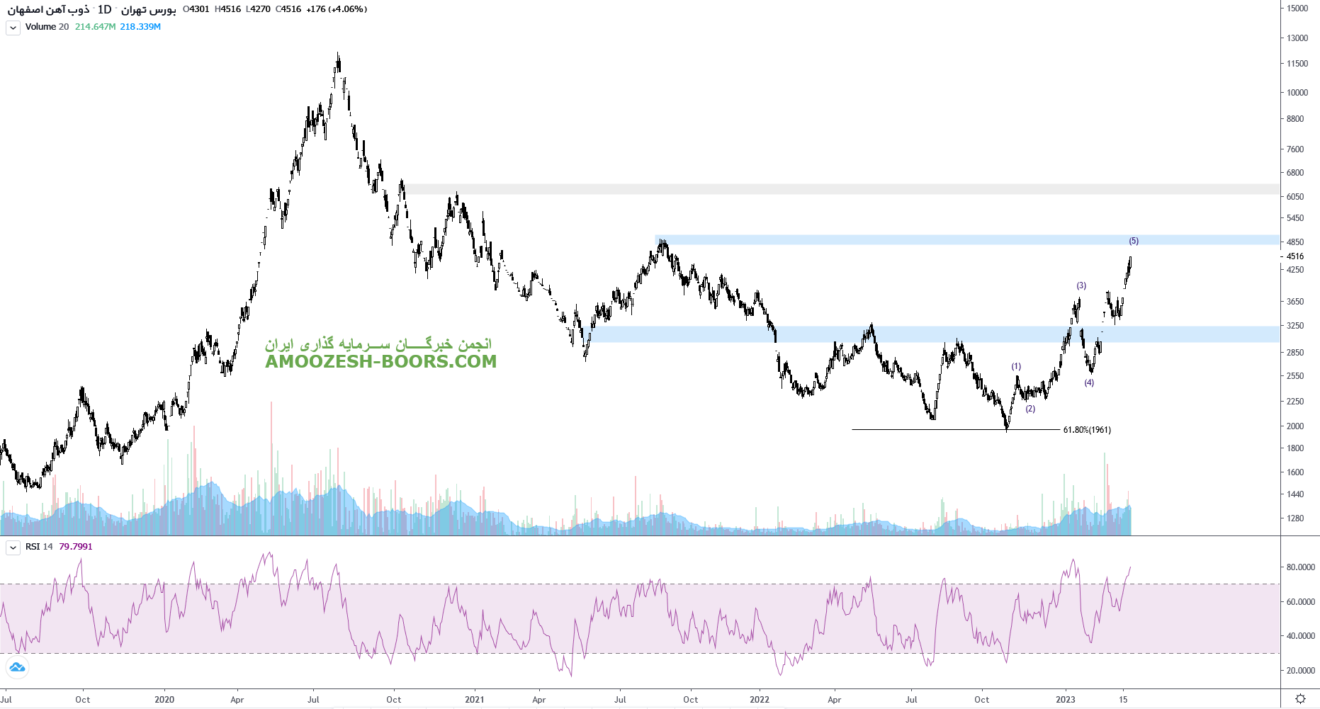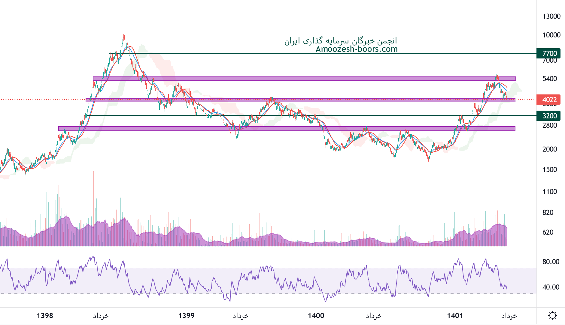 نماد ذوب حمایت محدوده 4000 ریال را دارا میباشد، در صورت تثبیت قیمت در این محدوده حرکت سهم تا محدوده 5500 ریال و بعد از آن 7700 ریال محتمل خواهد بود، همچنین در صورت از دست رفتن محدوده حمایتی ذکر شده، حمایت بعدی 3200 ریال خواهد بود.