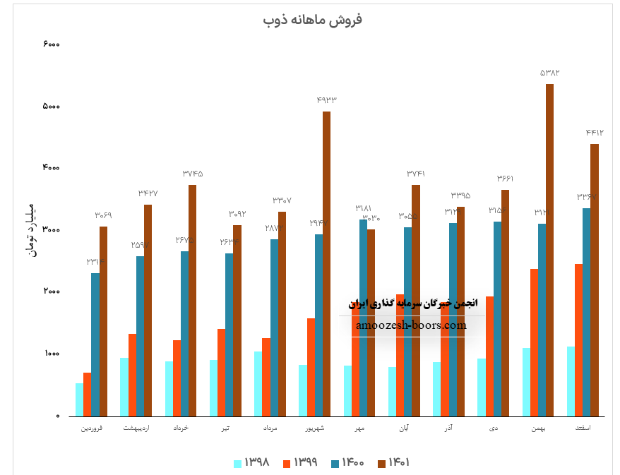 نماد ذوب (شرکت ذوب آهن اصفهان) در اسفند ماه ۱۴۰1 حدود مبلغ 4412 میلیارد تومان درآمد داشته که این میزان در مقایسه با ماه گذشته 18 درصد افت و همچنین در مقایسه با مدت مشابه سال گذشته 31 درصد افزایش پیدا کرده است.
