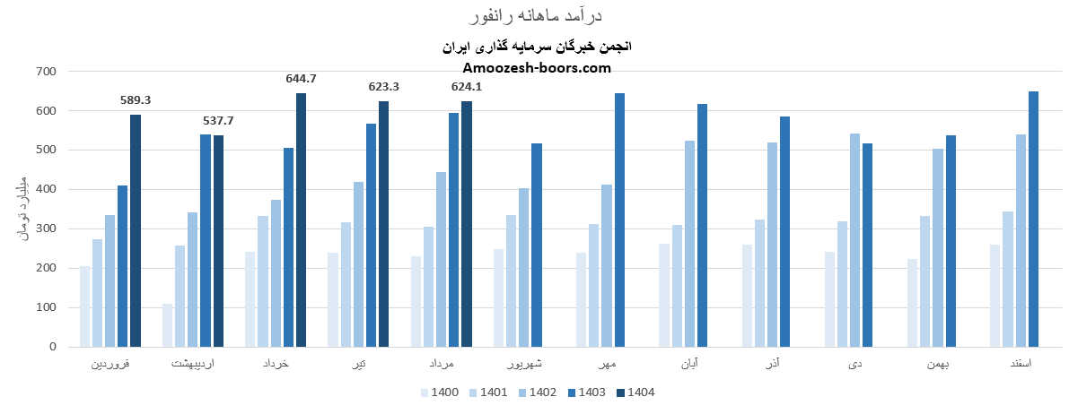 سهام رانفور از ابتدای سال مالی تا پایان مرداد 1404، مجموع درآمد ثبت شده شرکت به 3019 میلیارد تومان رسیده که نسبت به مدت مشابه سال گذشته 15 درصد رشد داشته، و در همین حال 45 درصد از کل درآمد سال گذشته تحقق یافته است.