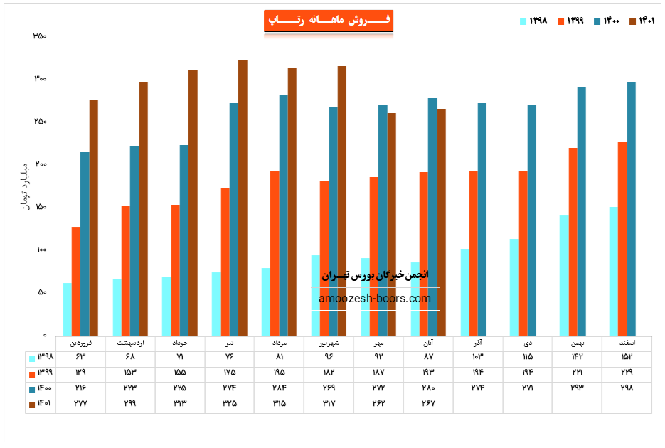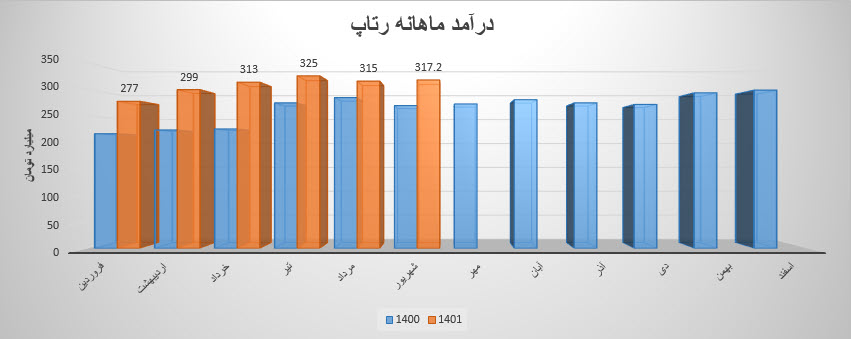 نماد رتاپ (شرکت تجارت الکترونیک پارسیان) در آبان ماه ۱۴۰1 حدود مبلغ 627 میلیارد تومان درآمد داشته که این میزان در مقایسه با ماه گذشته 2% افزایش و همچنین در مقایسه با مدت مشابه سال گذشته 5% کاهش درآمد پیدا کرده است.