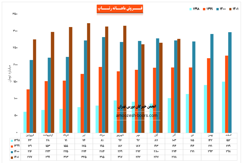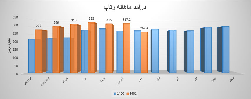 نماد رتاپ (شرکت تجارت الکترونیک پارسیان) در آذر ماه ۱۴۰1 حدود مبلغ 278 میلیارد تومان درآمد داشته که این میزان در مقایسه با ماه گذشته 4% و همچنین در مقایسه با مدت مشابه سال گذشته 1% رشد پیدا کرده است.