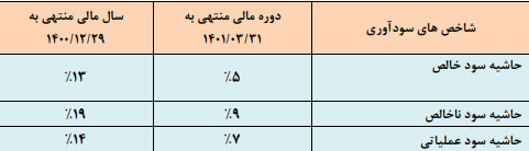 حاشیه سود ناخالص شرکت در سال 1400 برابر 13% و در فصل مشابه سال گذشته 18% بود که در این فصل به 9% رسید.