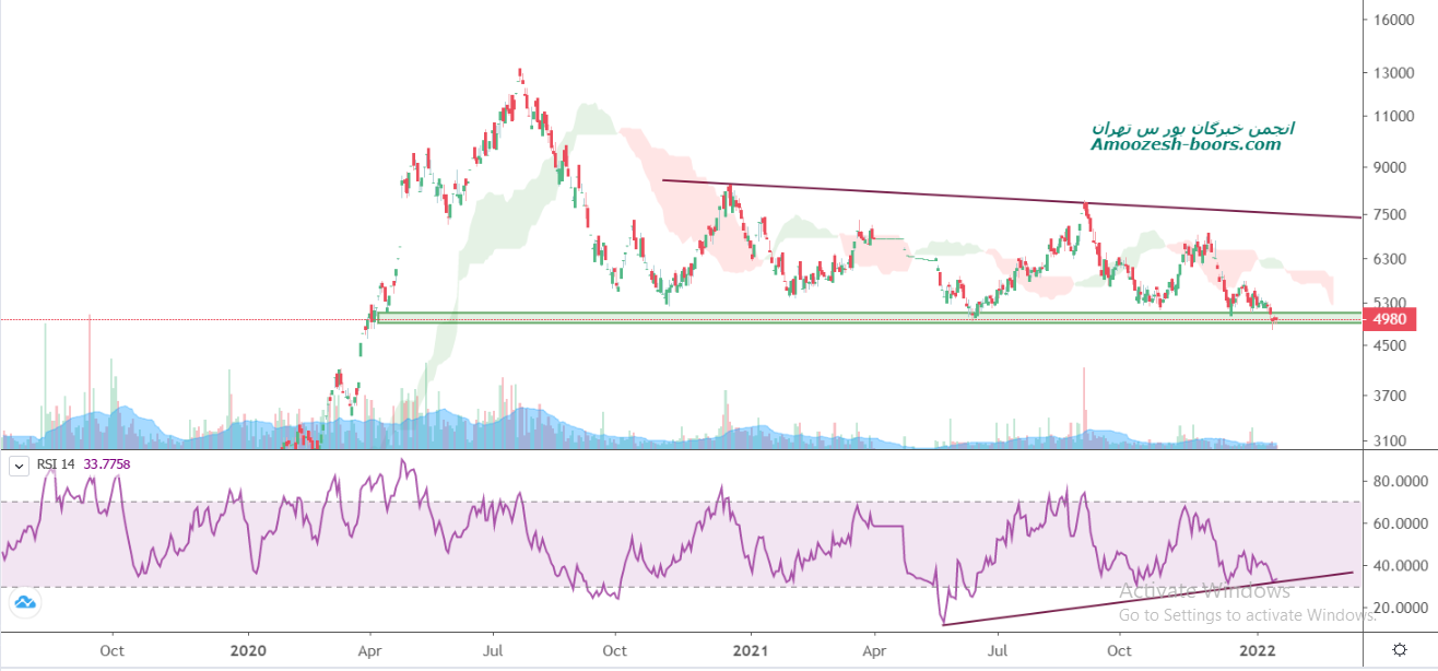 رتاپ با ایجاد واگرایی مثبت در منطقه کم ریسک حمایت استاتیک واقع شده وبا توجه به کندل برگشتی، تثبیت قیمت درین محدوده محتمل میباشدو مقاومت های 5500 و 7000 به ترتیب تا سقف مقاومت داینامیک نزولی ترسیم شده بر سر راه سهم میباشد و در صورت از بین رفتن این محدوده حمایتی حد ضرر فعال خواهد شد .