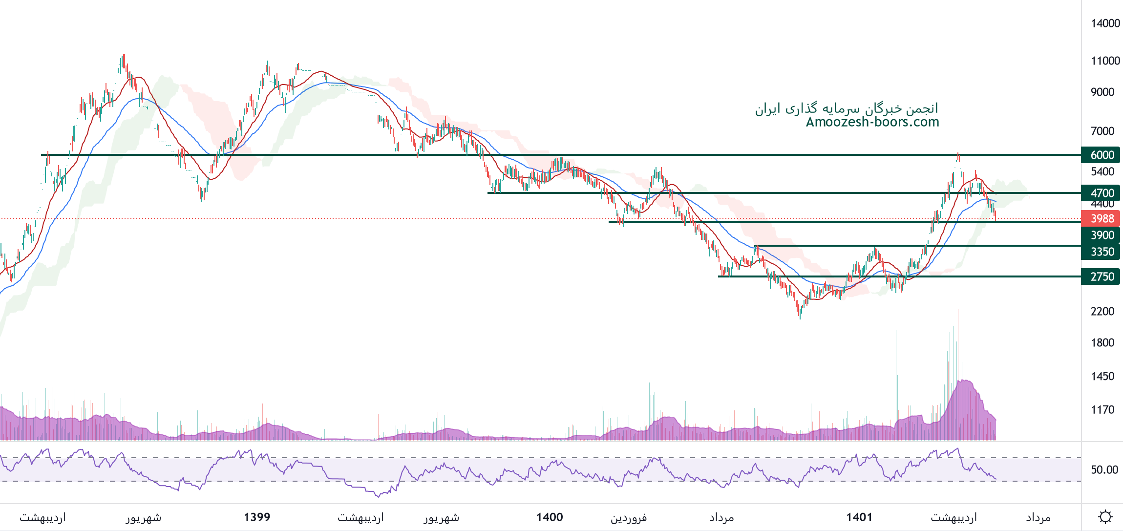نماد رکیش سطح حمایت 3900 ریال را دارا میباشد، در صورت تثبیت قیمت، حرکت سهم رکیش تا محدوده های قیمتی 4700 ریال و بعد از آن 6000 ریال محتمل خواهد بود، همچنین در صورت از دست رفتن سطح حمایت رکیش که ذکر شد، اولین حمایت سهم 3350 ریال خواهد بود.