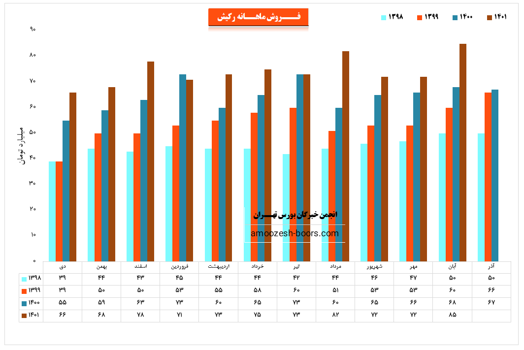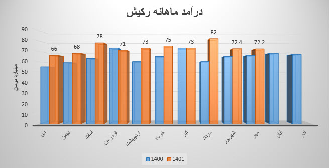 نماد رکیش (شرکت کارت اعتباری ایران کیش) در آبان ماه ۱۴۰1 حدود مبلغ 85 میلیارد تومان درآمد داشته که این میزان در مقایسه با ماه گذشته 18% و همچنین در مقایسه با مدت مشابه سال گذشته 25% رشد پیدا کرده است.
