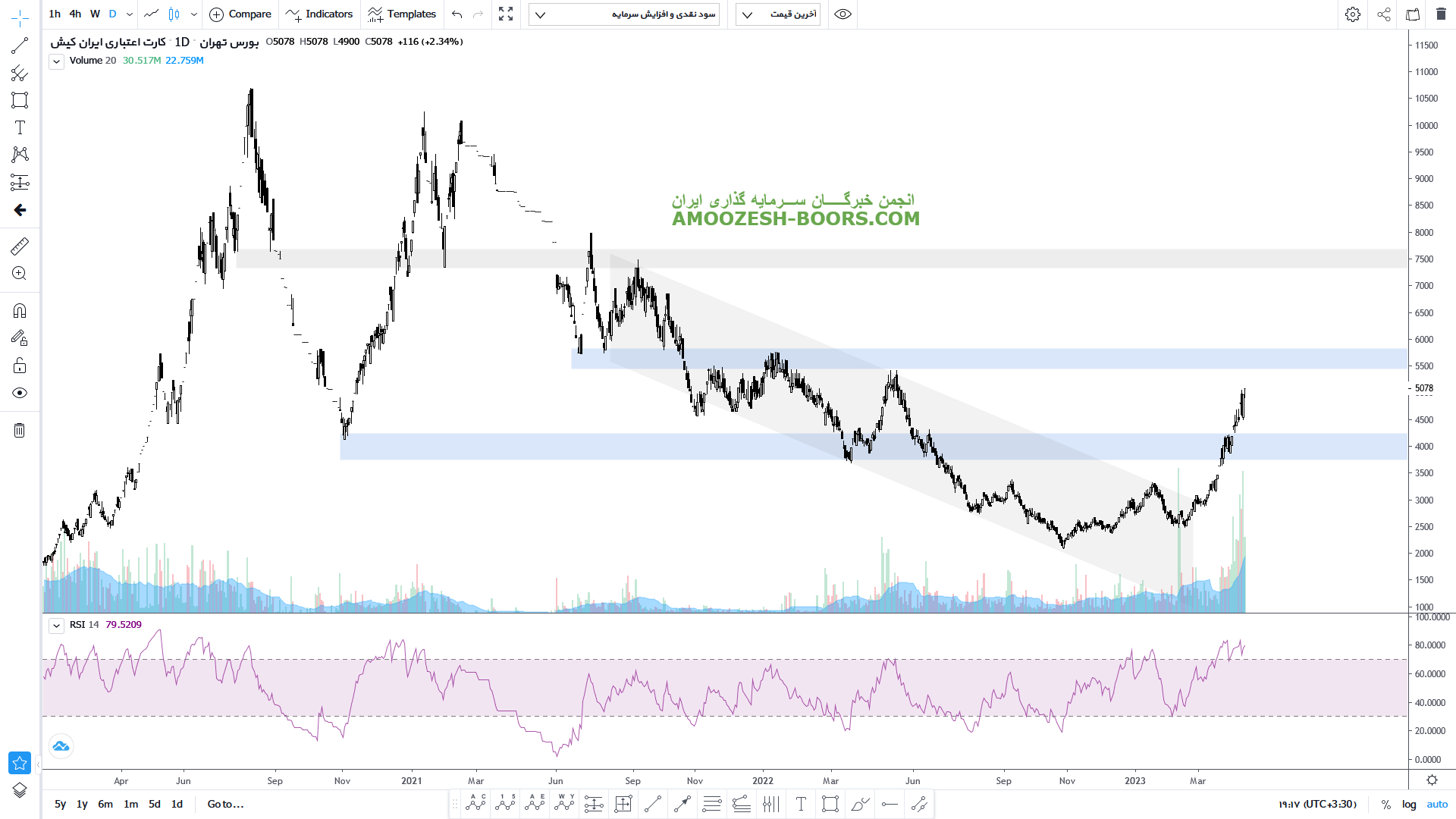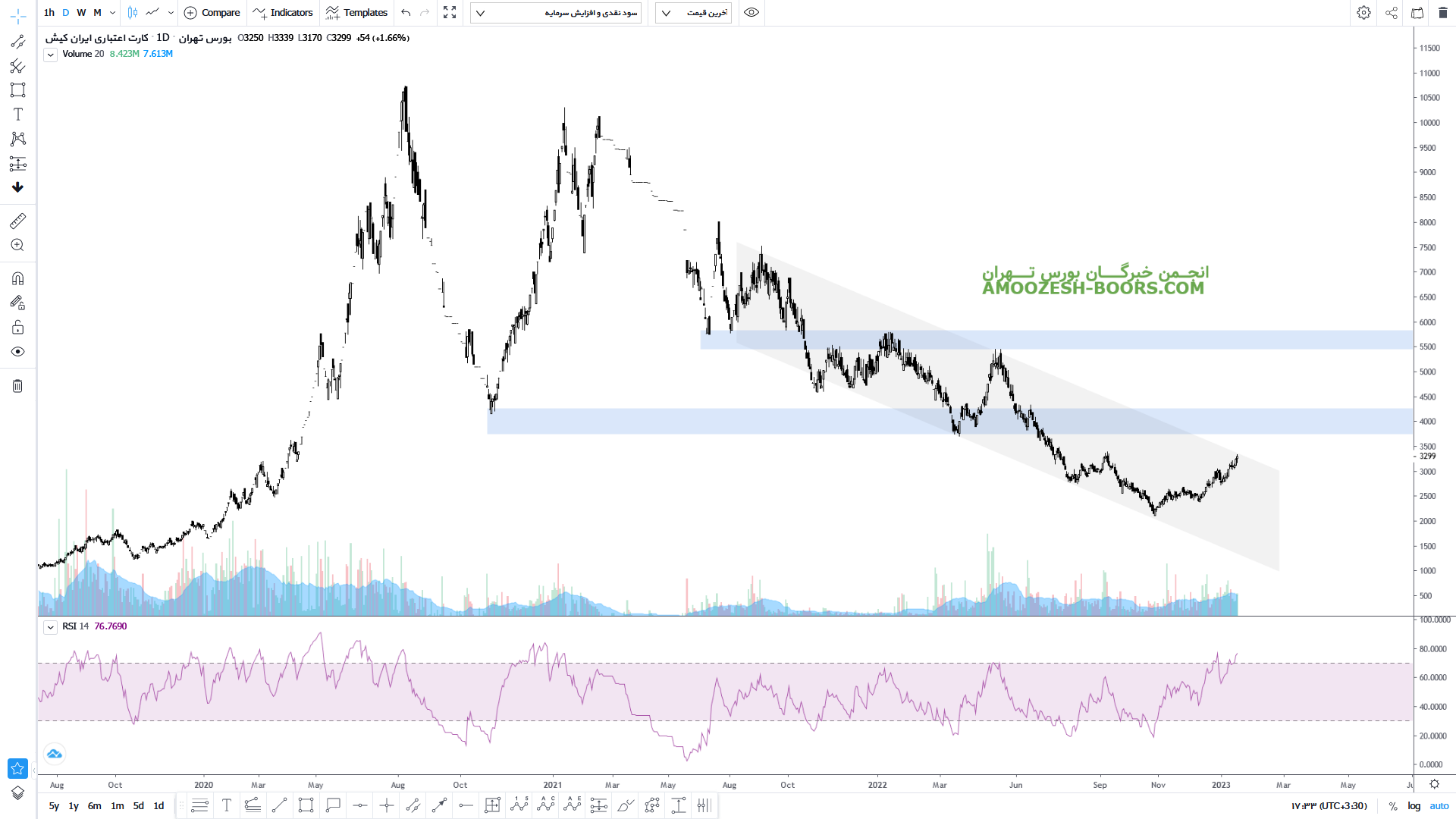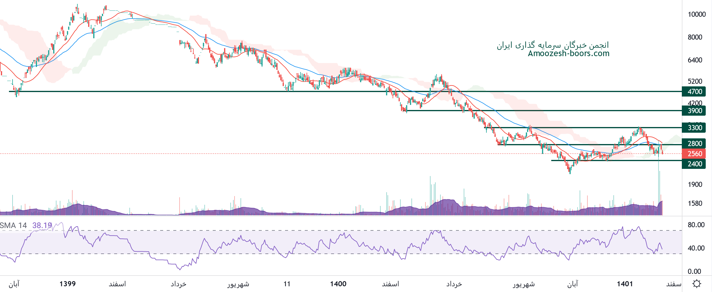 نماد رکیش در حال حاضر مقاومت 2400 ریال را دارا میباشد، در صورت تثبیت روی این محدوده حمایتی، حرکت سهم تا 2800 و بعد از آن 3300 ریال محتمل خواهد بود، همچنین در صورت از دست رفتن این محدوده حمایتی، حمایت بعدی به ترتیب 2400 و 2100 ریال در نظر گرفته خواهد شد.
