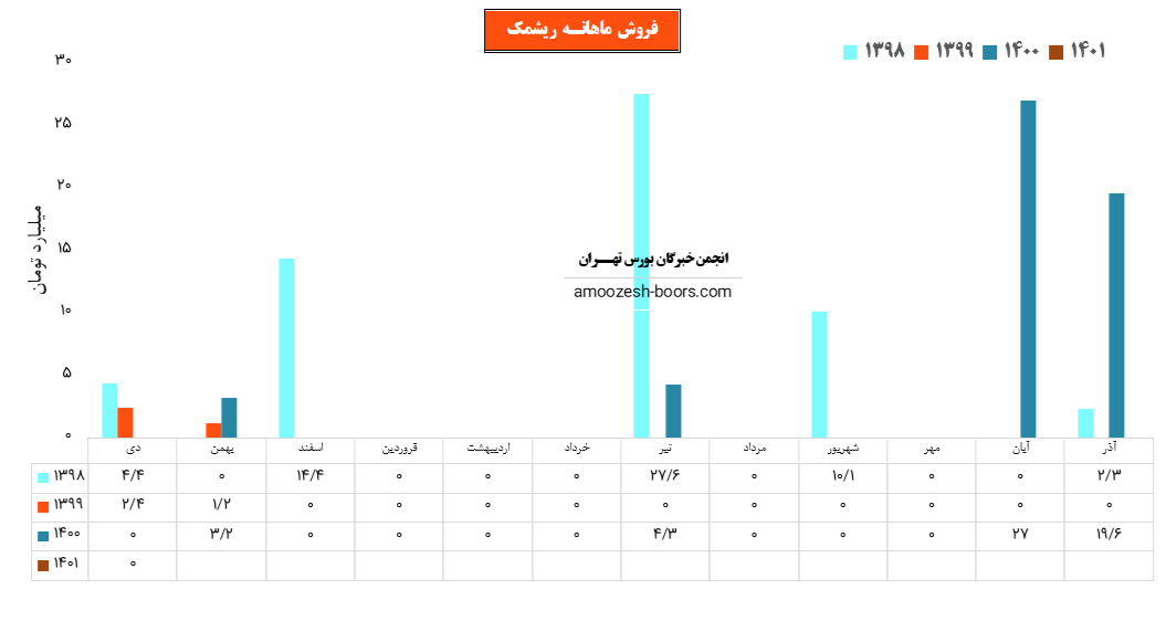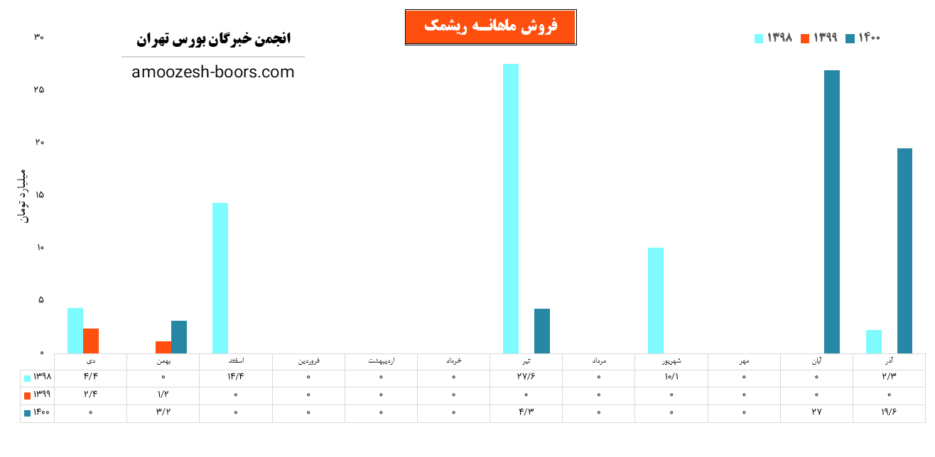 سهم ریشمک توانست در آذر که اخرین ماه سال مالی خود مباشد 20 میلیارد تومان صادرات داشته باشد.