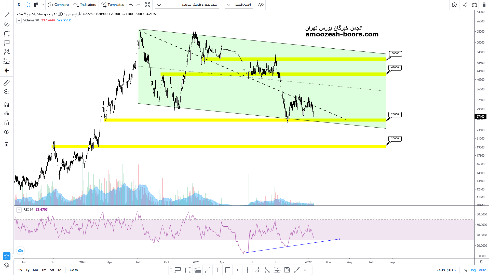 اما در صورت شکست کف کانال نزول بیشتر قیمت صورت میگیرد و درصورت بروز این اتفاق محدوده حمایتی بعدی که میتواند مانع ریزش بیشتر قیمت شود محدوده حمایتی 2000 تومان میباشد