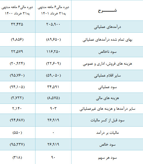 سود خالــص: 15 میلیارد تومان که در دوره مشابه گذشتــه 11 میلیون تومان زیان خالص شناسایی شده بود