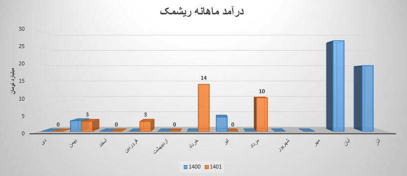 سهم ریشمک تولید و صادرات ریشمک با نماد ریشمک در شهریور ماه ۱۴۰1 حدود مبلغ 16 میلیارد تومان درآمد داشته که این میزان در مقایسه با ماه گذشته 60% افزایش پیدا کرده است