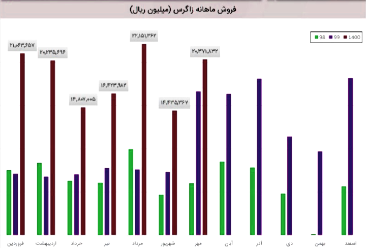 نماد زاگرس نسبت به دوره 1 ماهه مشابه سال قبل 191% افزایش درآمد داشته است.