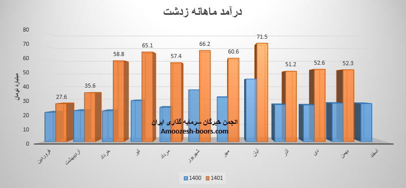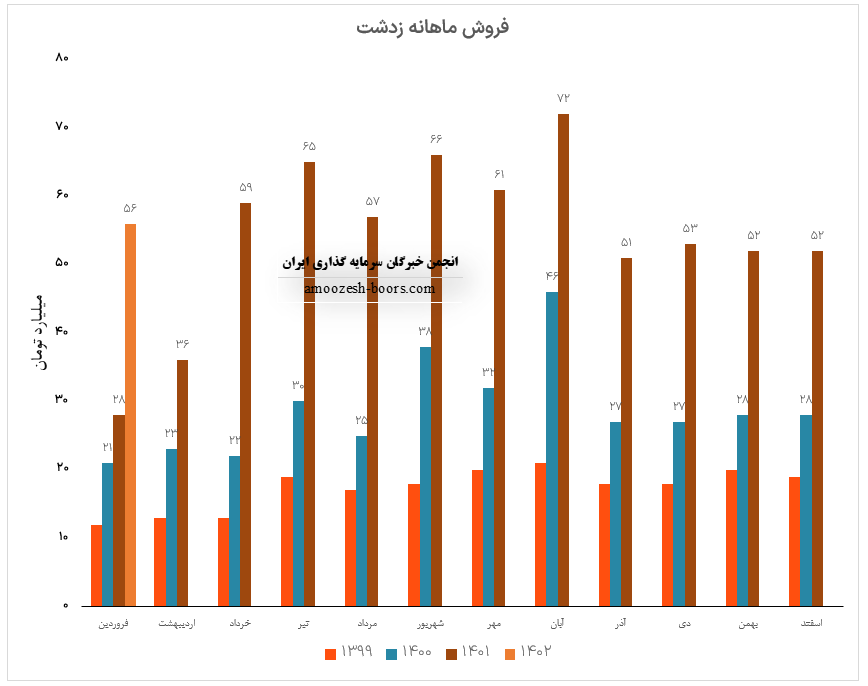 نماد زدشت با تکرار درامد ماه گذشته به رقمی برابر با 52.4 میلیارد تومان دست یافته است، هرچند این رقم افت 4 درصدی نسبت به متوسط ماه های قبلی داشته اما نسبت به اسفند سال گذشته با رشد 89 درصدی همراه بوده است، بیشترین وزن سبد فروش سهم زدشت را شیر خام تشکیل میدهد، میزان تولید این محصول 2%، مقدار فروش 1% کاهش نسبت به ماه قبلی داشته است، نرخ فروش شیر خام بدون تغییر گزارش شده است، همچنین نماد زدشت در 12 ماهه 189% بهتر از سال درآمد سال گذشته عمل نموده است.
