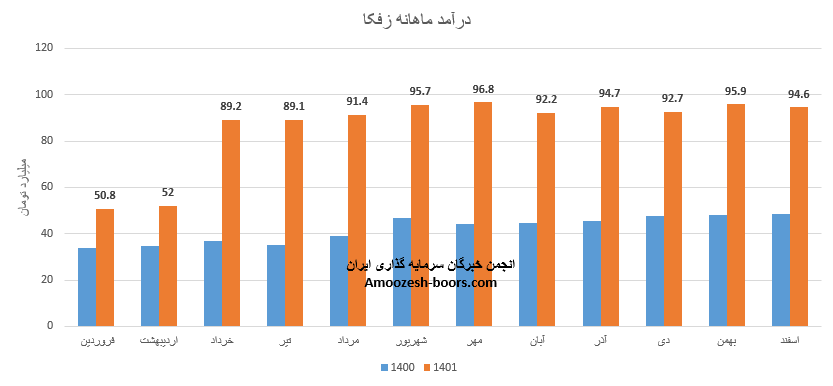 شرکت فکا ( زفکا ) در یازدهمین ماه از فعالیت خود به درآمد 59.9 میلیارد تومان رسیده است، درآمد بهمن ماه سهم زفکا تغییرات زیر را تجربه نموده: