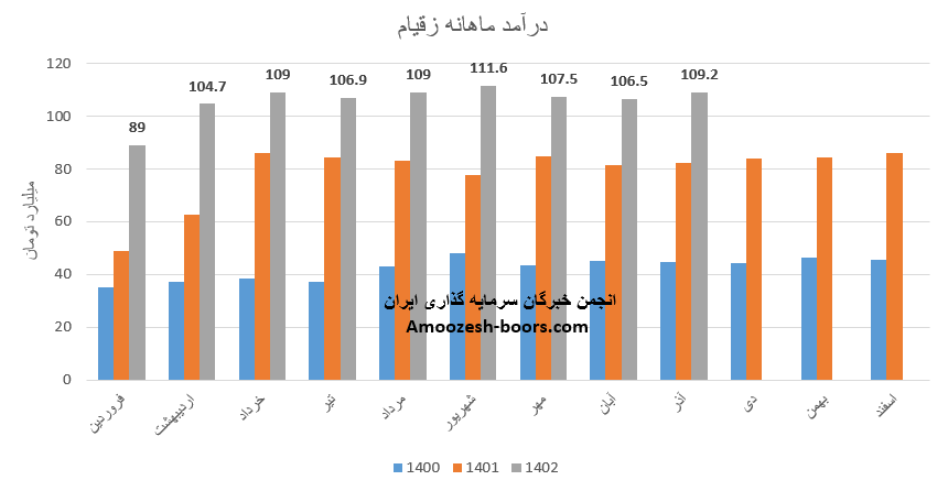 فروش آذر ماه سال 1402 سهم زقیام 109.2 میلیارد تومان گزارش شده است، تغییرات درآمدی زقیام به شرح زیر میباشد:
