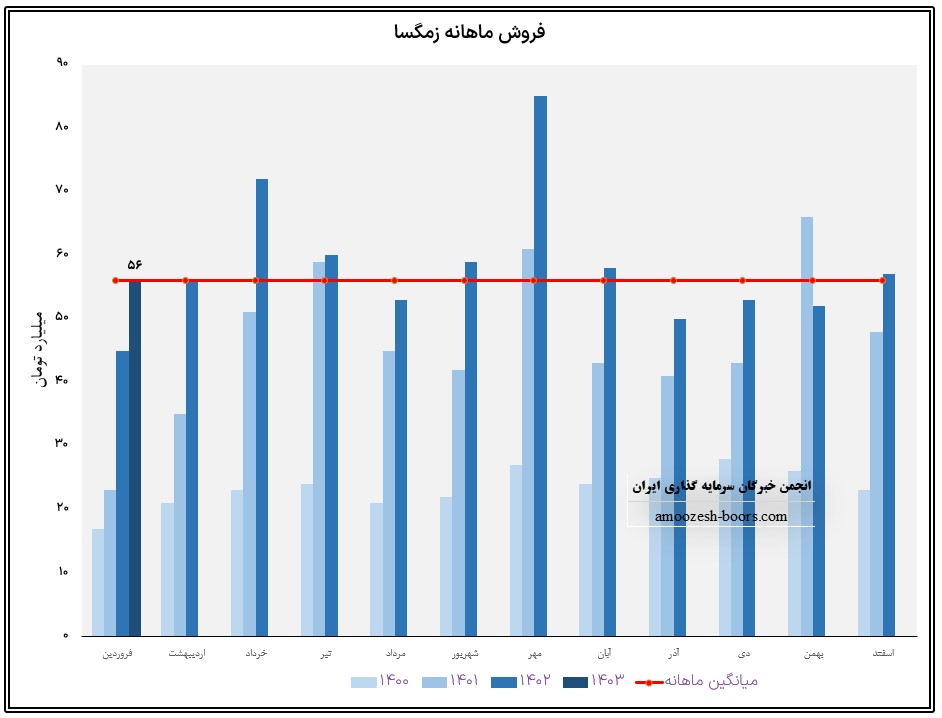 درآمد ماهانه زمگسا نسبت به ماه گذشته 12% کاهش و نسبت به متوسط ماهانه 3% افزایش و نسبت به خرداد سال گذشته 5% کاهش داشته است.
