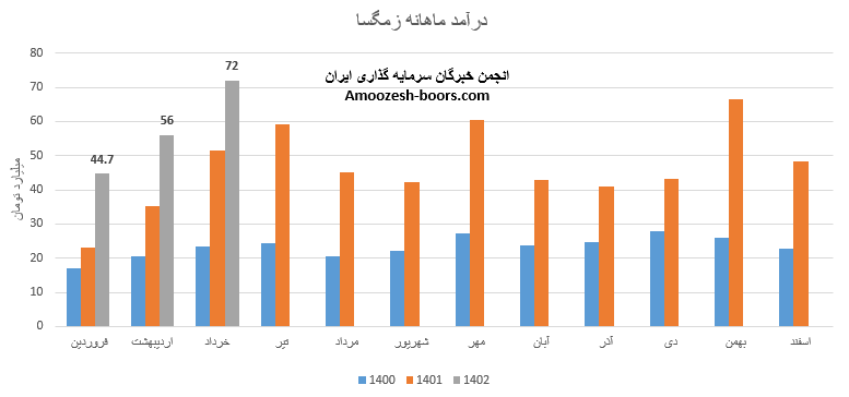 نماد زمگسا (شرکت کشاورزی و دامپروری مگسال) در تیر ماه 1402 حدود مبلغ 60 میلیارد تومان درآمد داشته که این میزان در مقایسه با ماه گذشته 17% افت و همچنین در مقایسه با مدت مشابه سال گذشته 2% رشد پیدا کرده است.